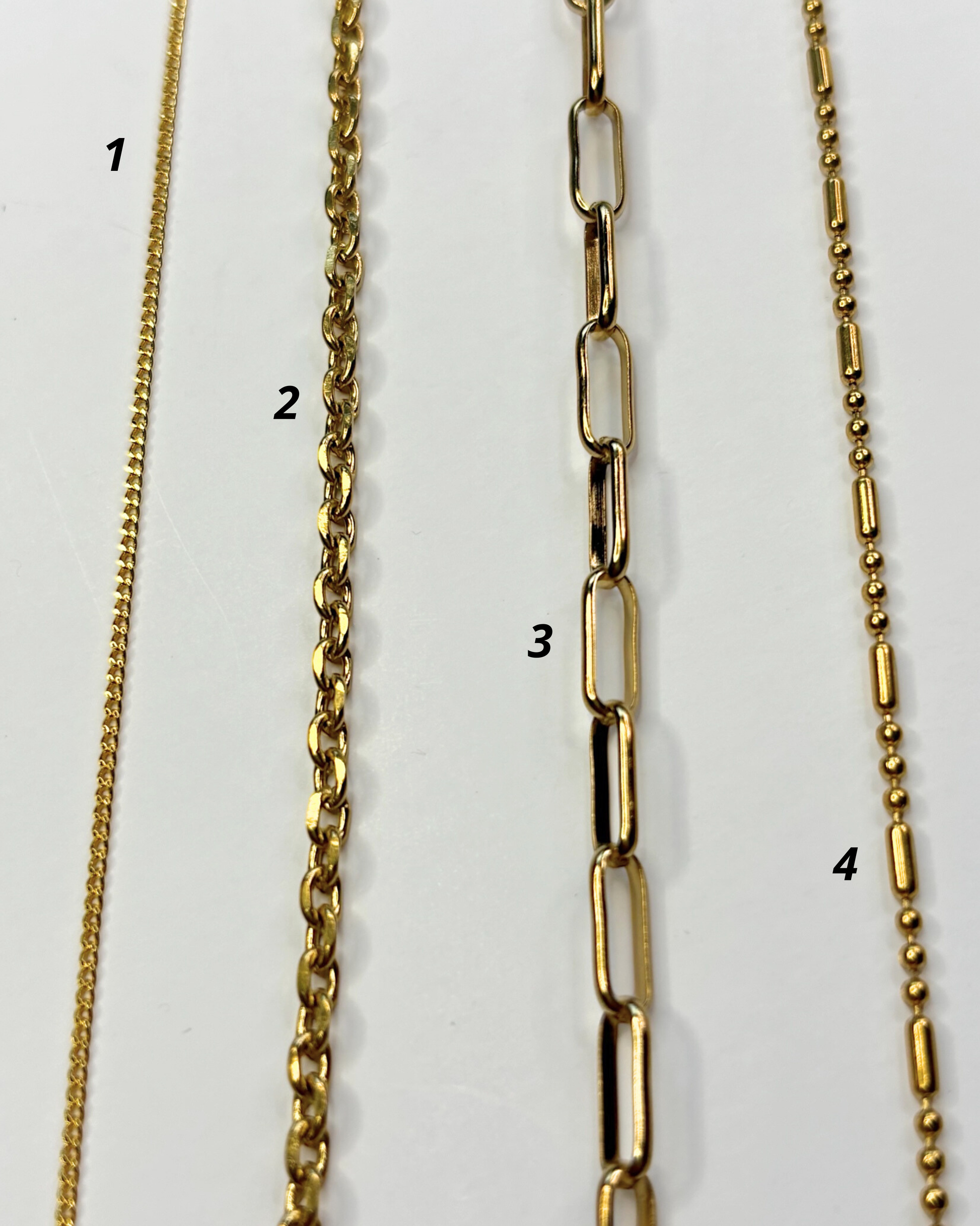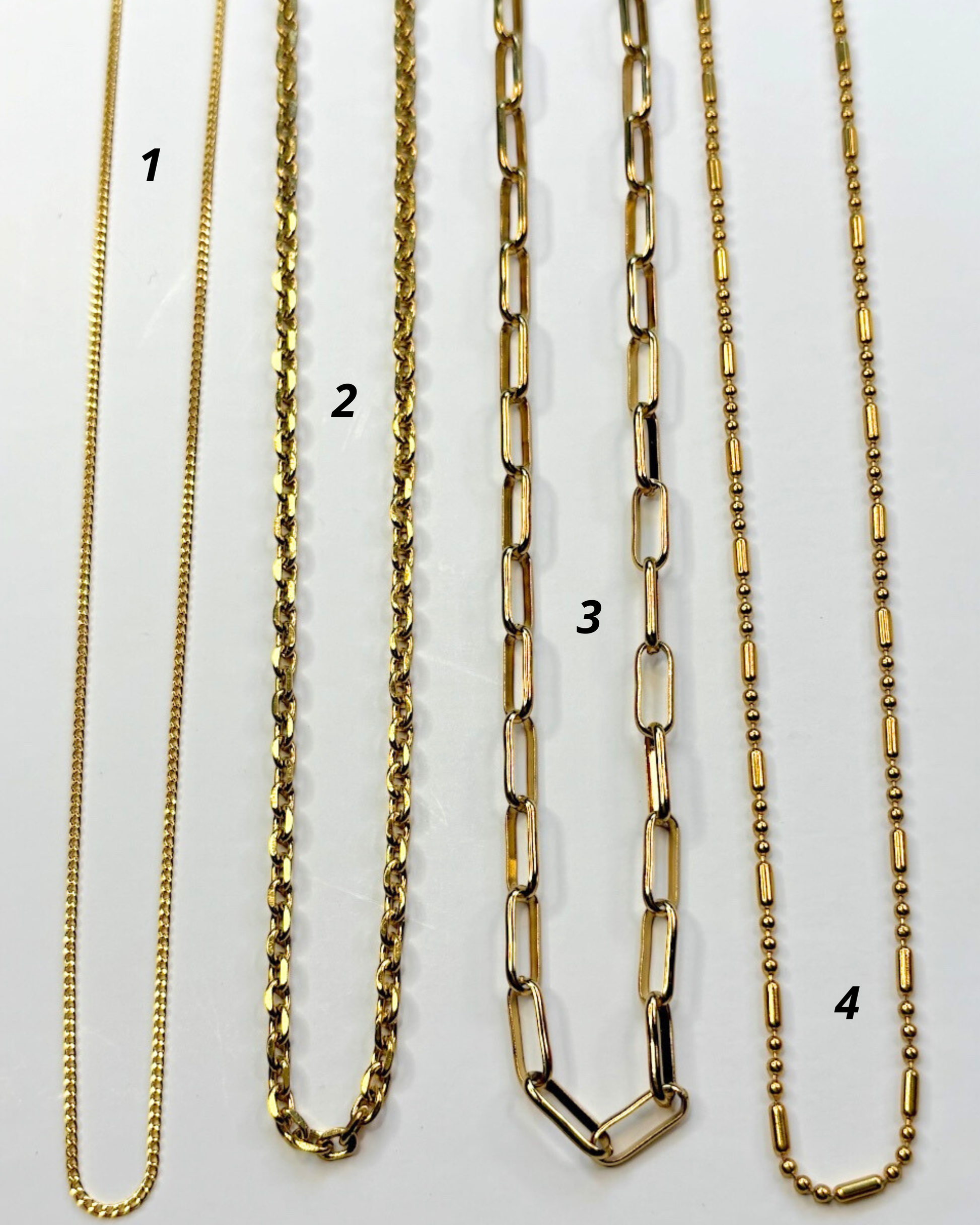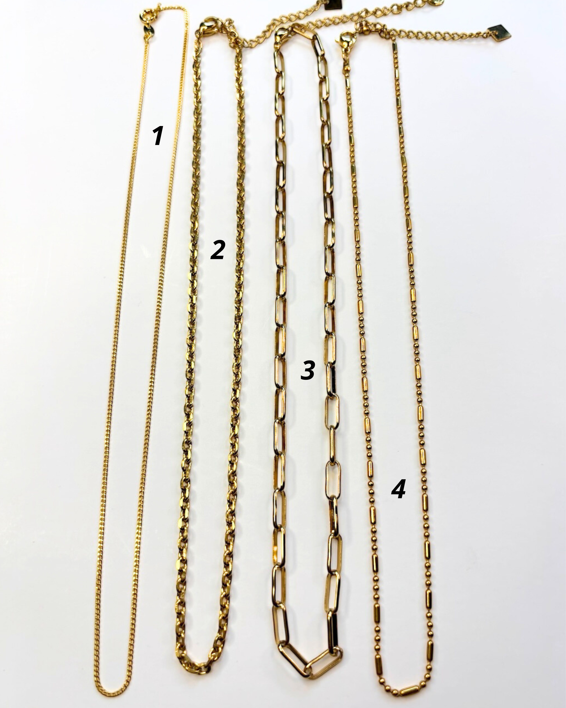 Cadena de acero quirúrgico bañada en oro para tus dijes o usar en solitario