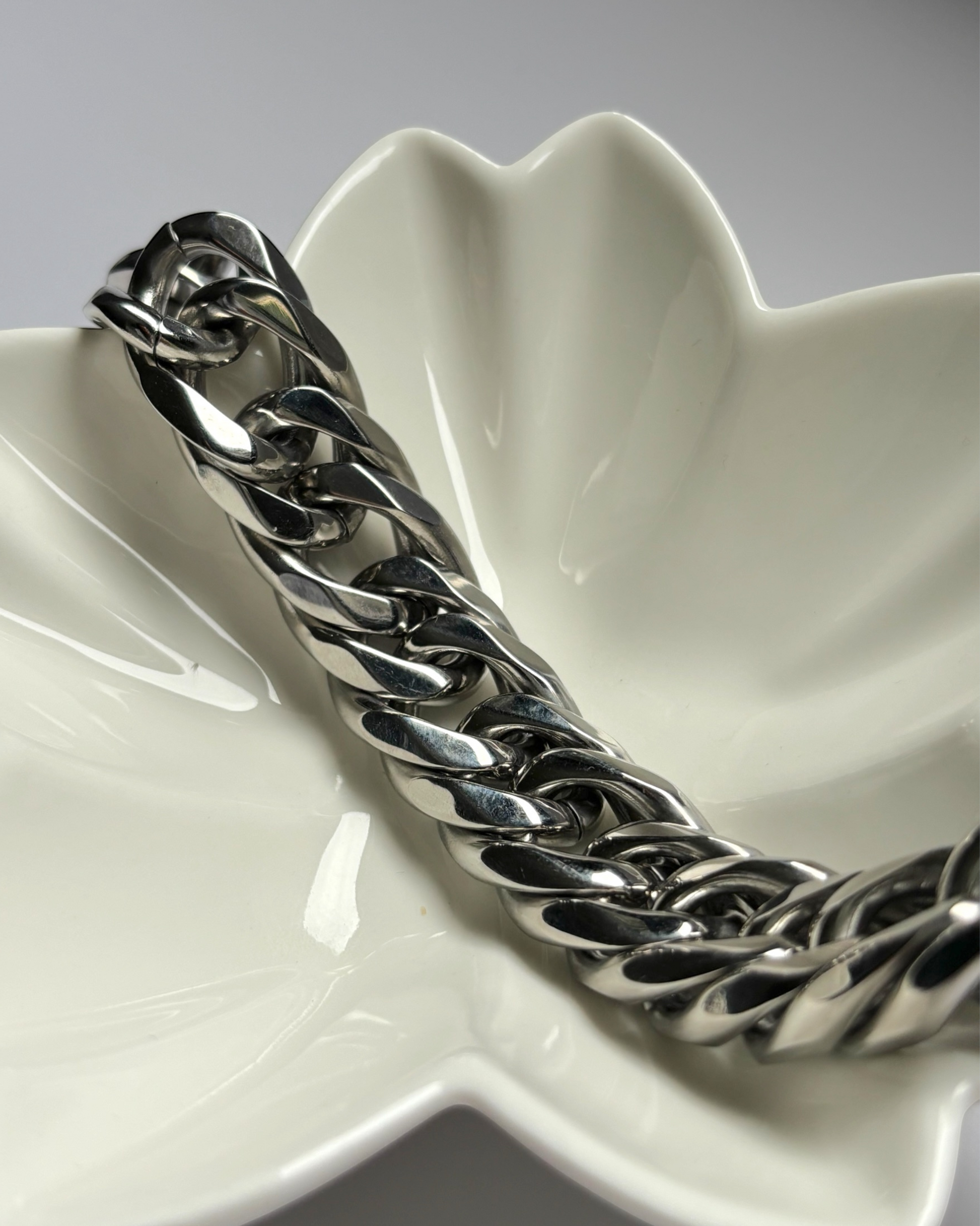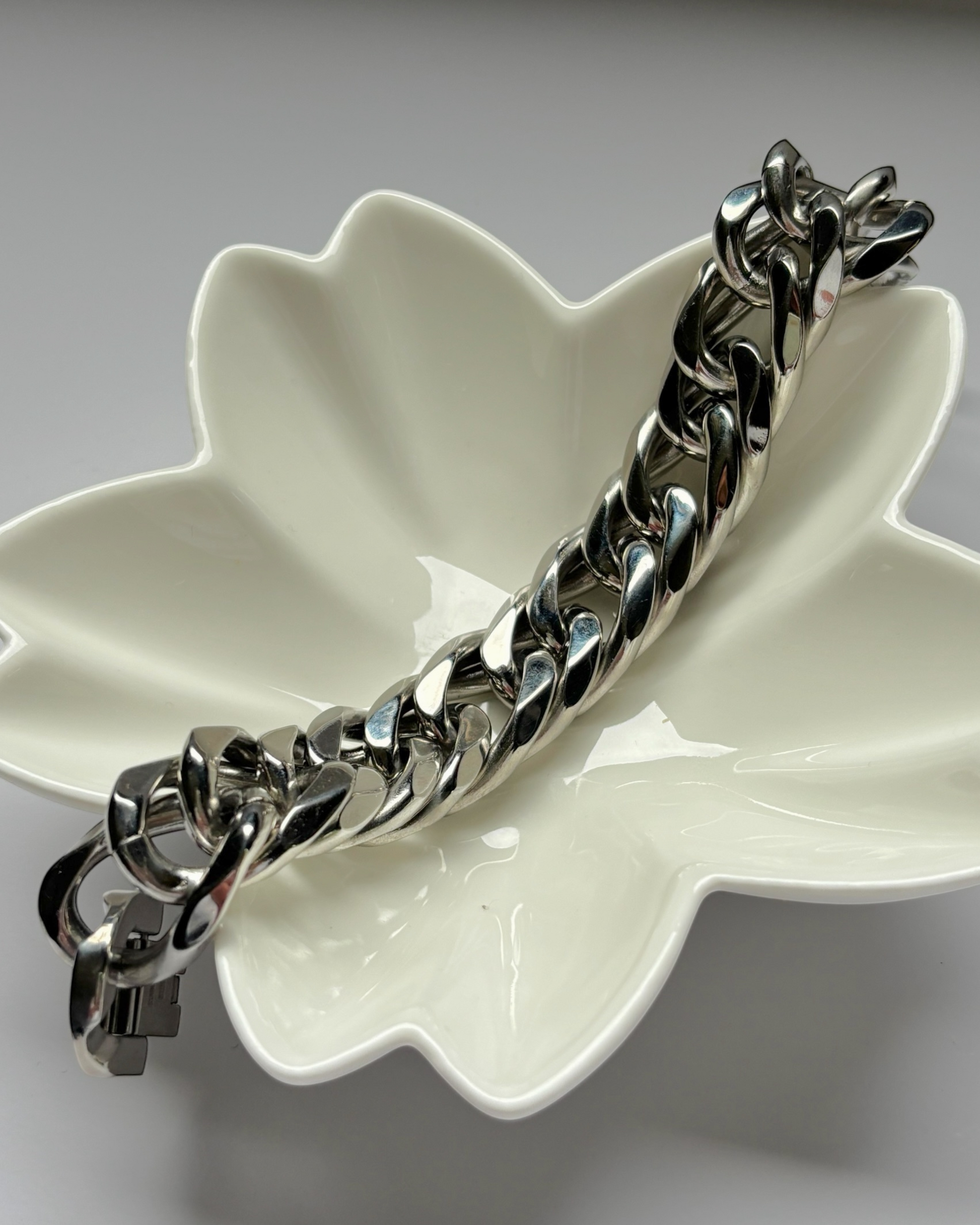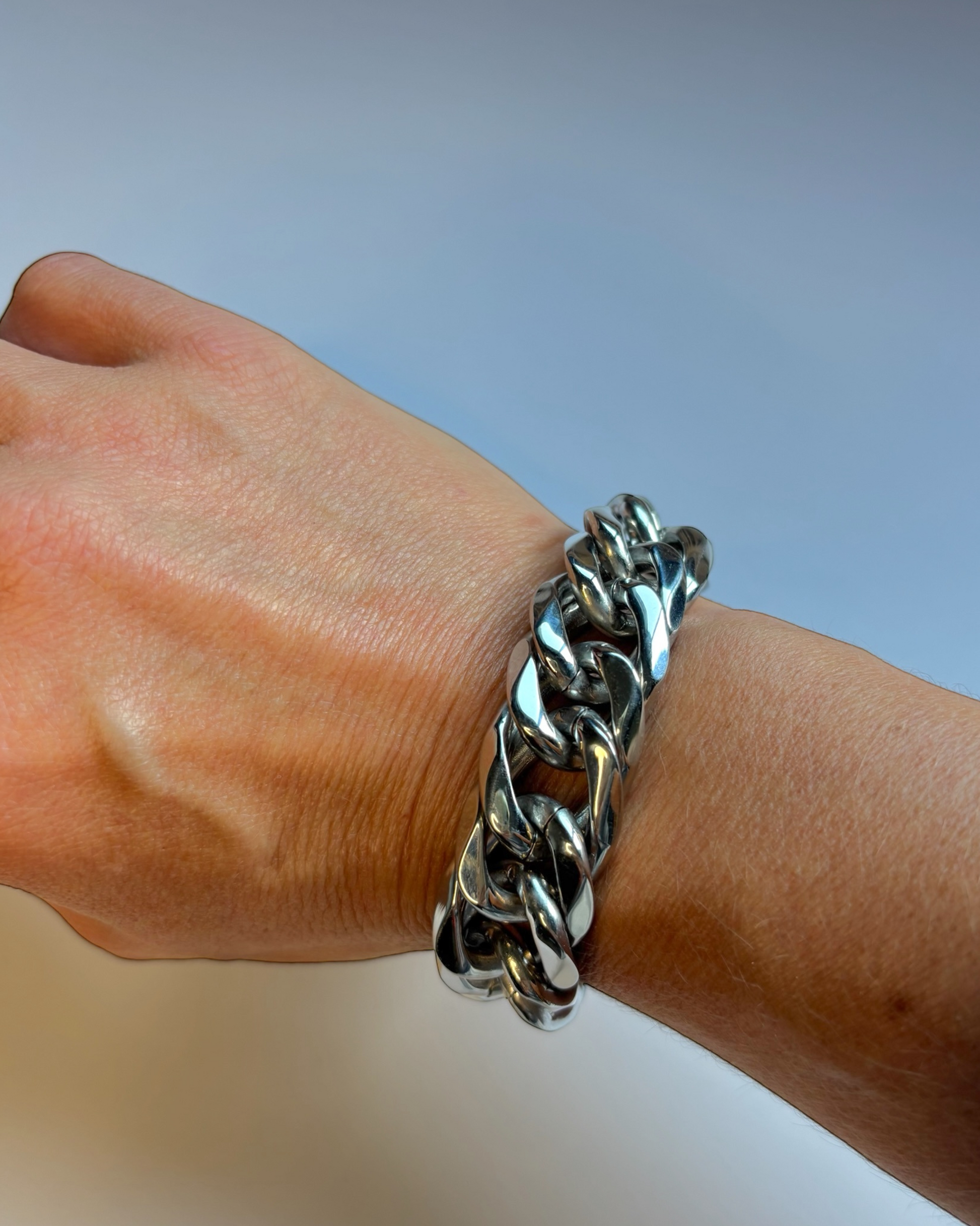 Viste tu outfit entero, no hace falta mas que esta cadena vistiéndo tu muñeca. Para un look metalero y muy chic.