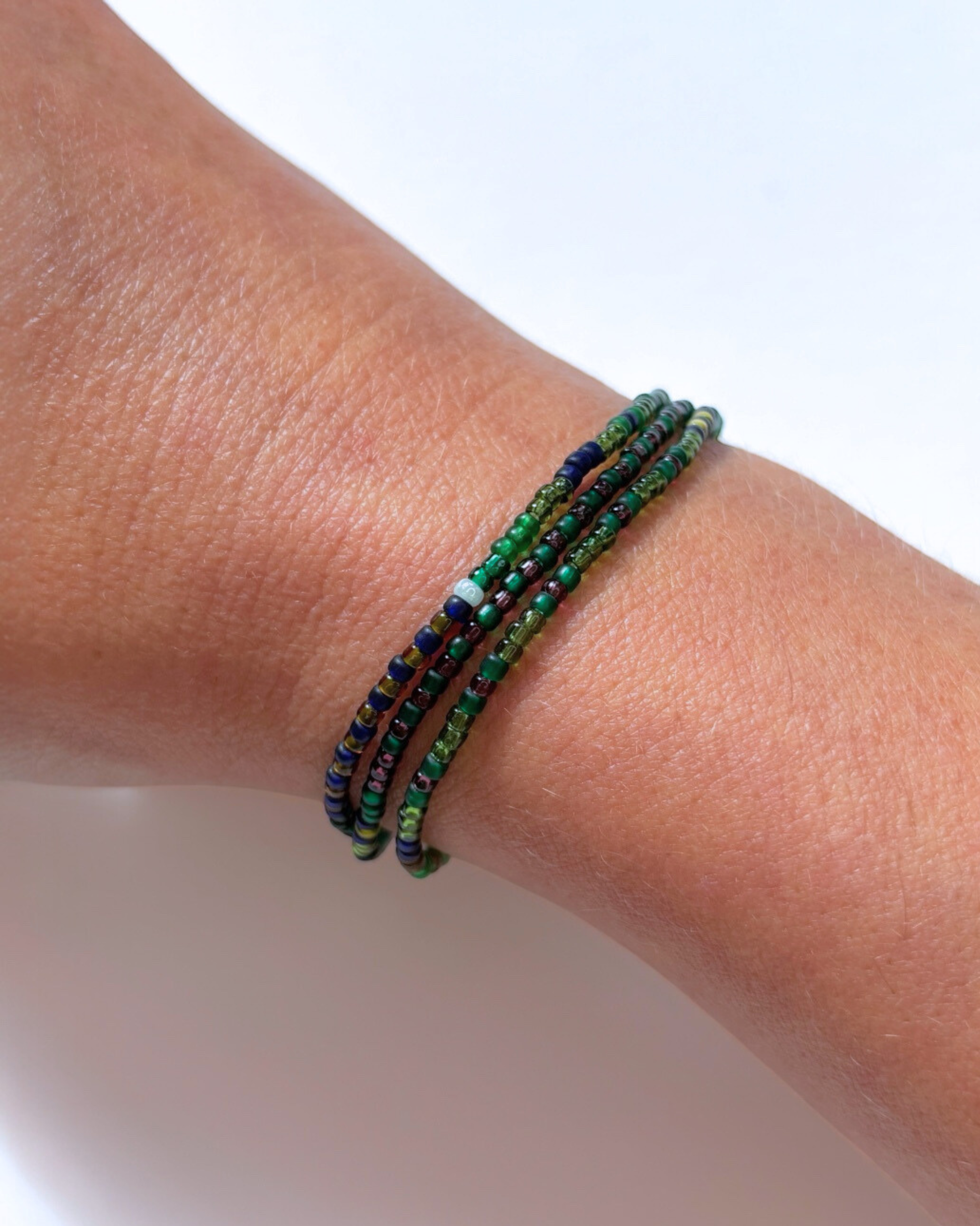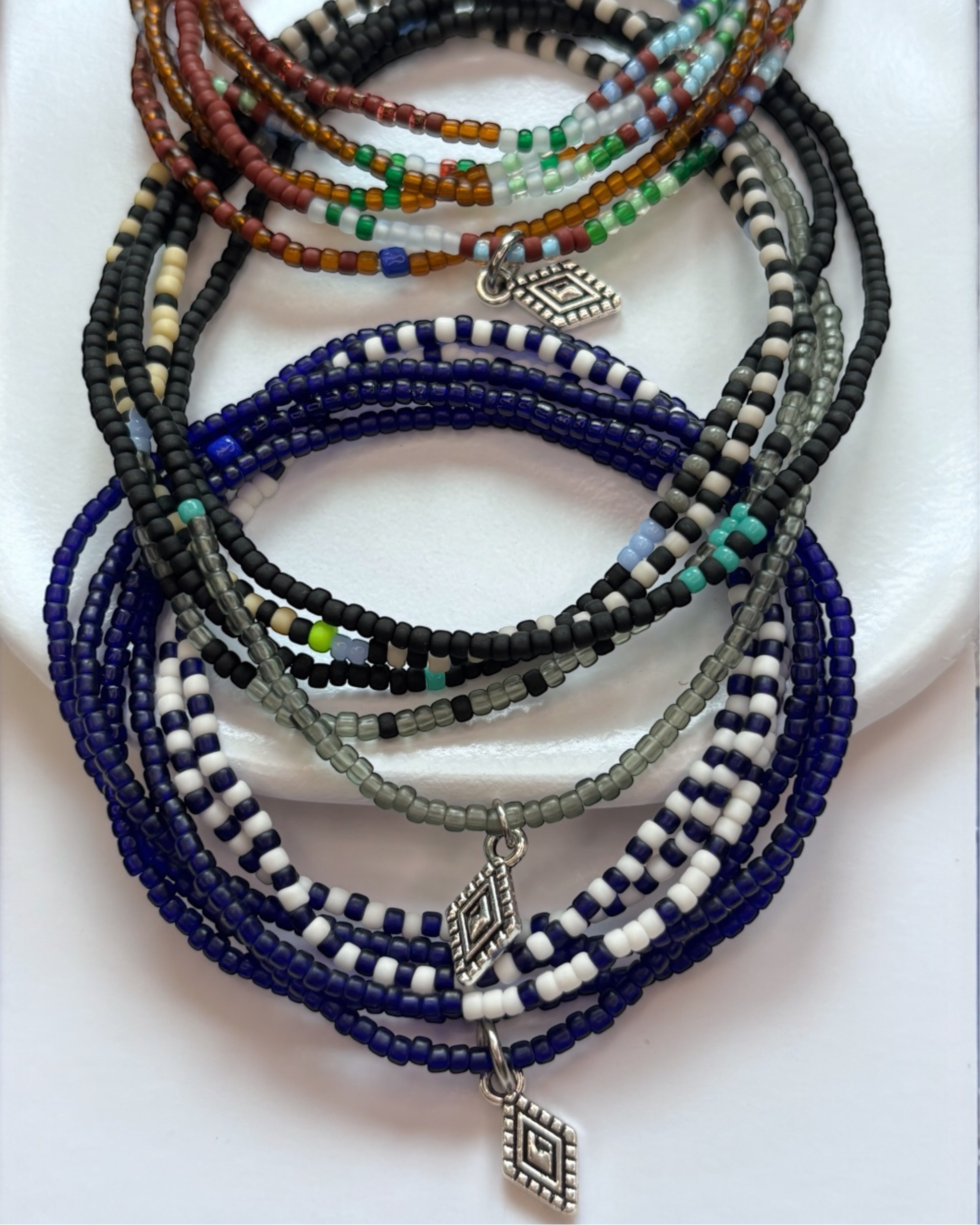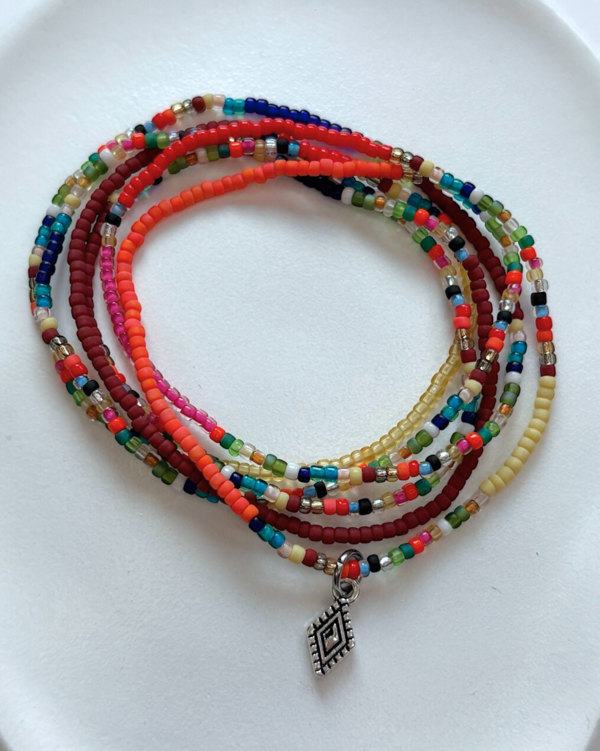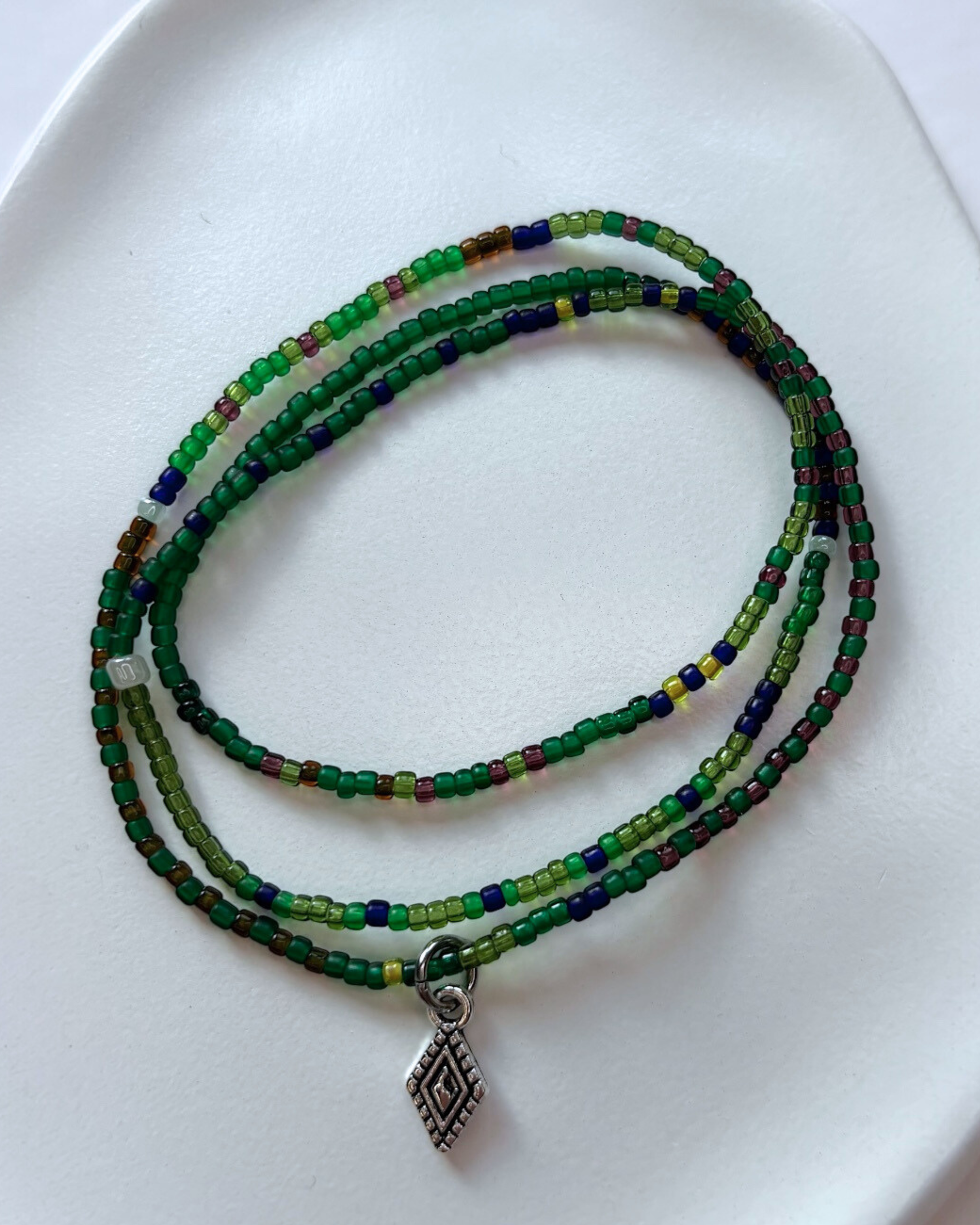 Descubrí la magia del color con nuestras pulseras artesanales hechas con mostacillas cuidadosamente seleccionadas. Cada pieza está confeccionada con tanza elástica resistente, lo que permite usarlas de tres formas distintas: como pulsera, collar o tobillera.
