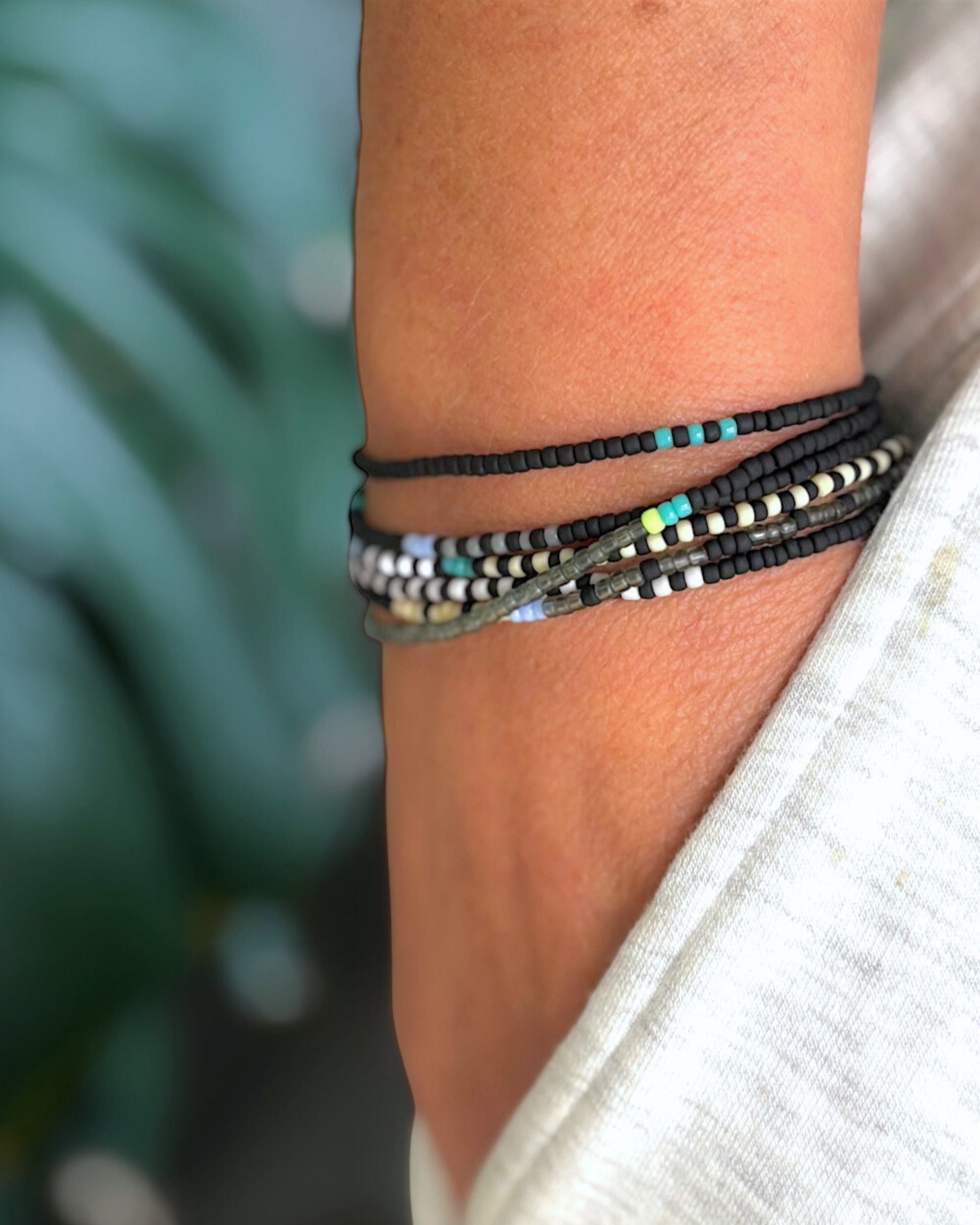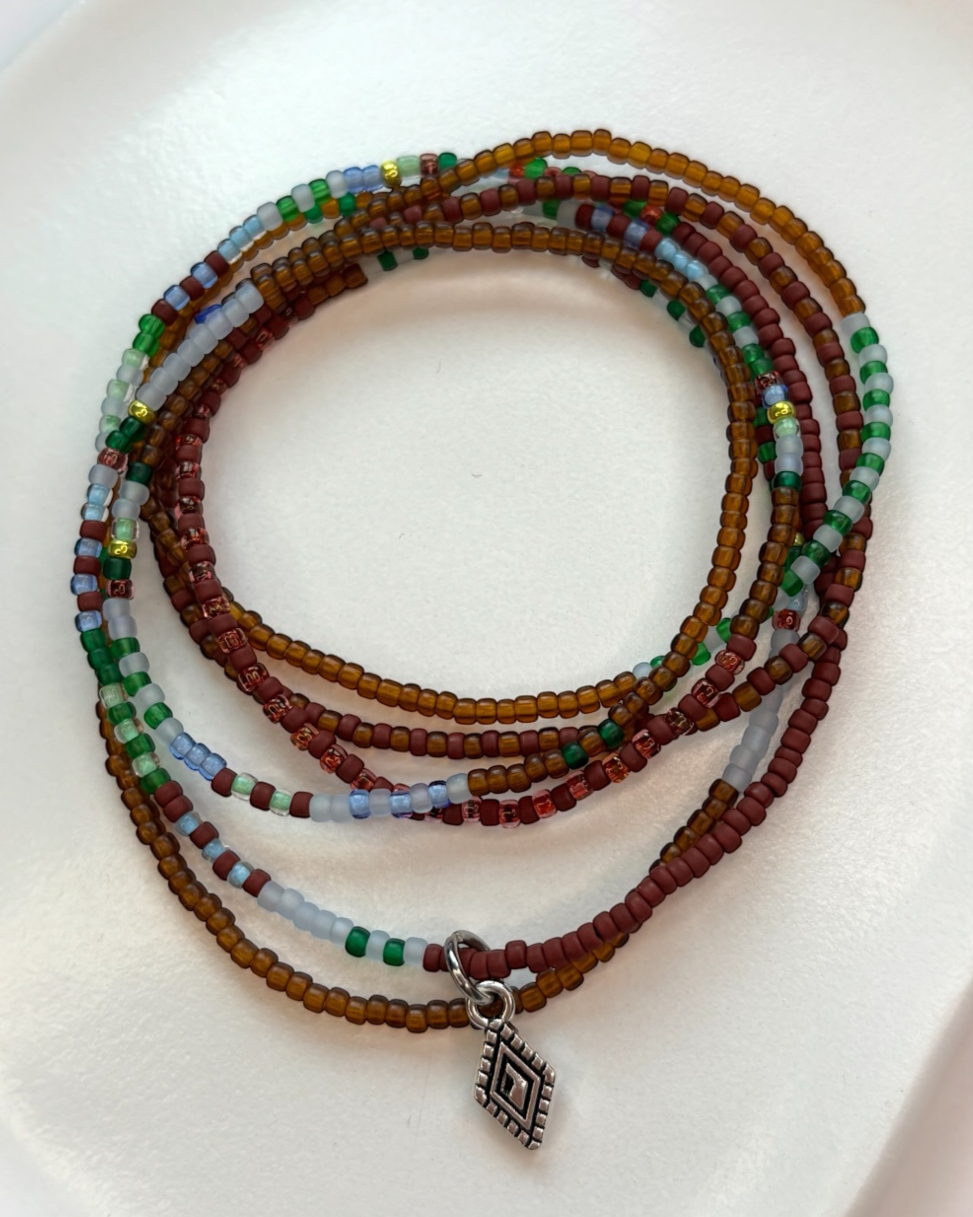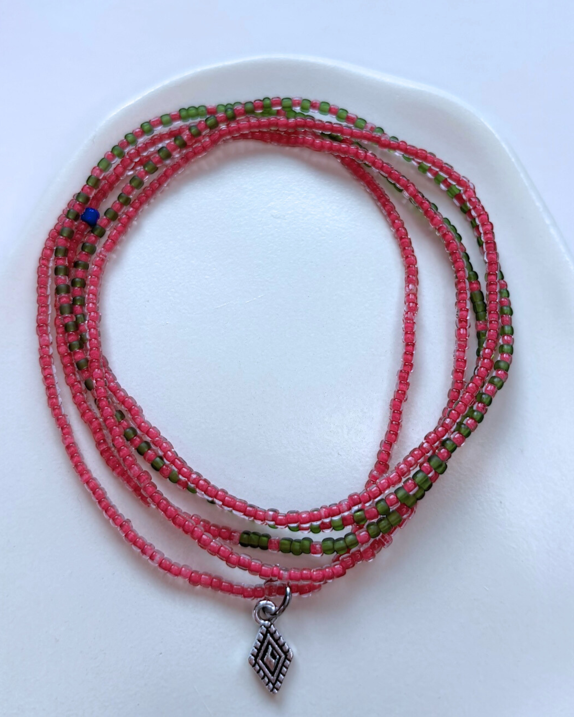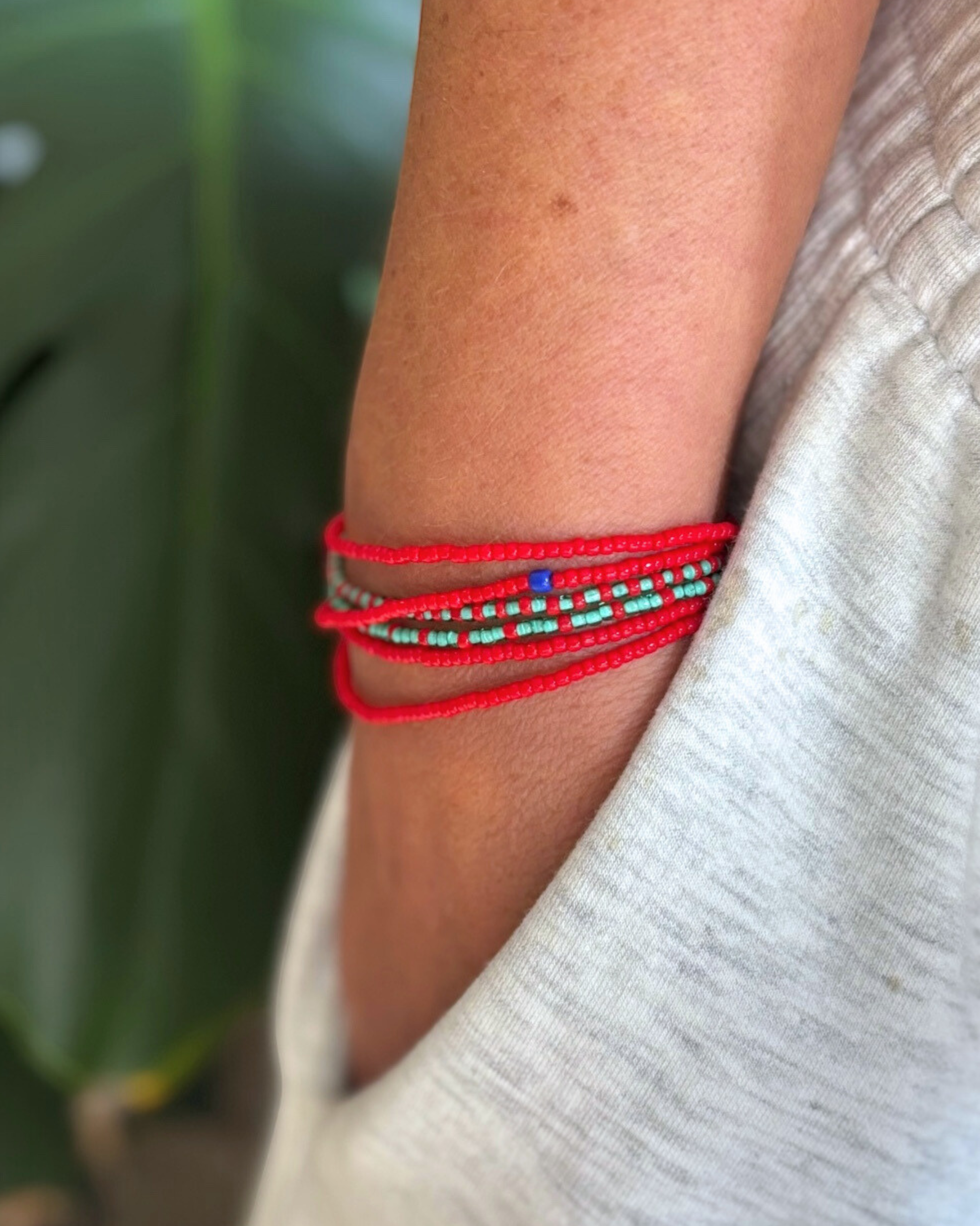 Descubrí la magia del color con nuestras pulseras artesanales hechas con mostacillas cuidadosamente seleccionadas. Cada pieza está confeccionada con tanza elástica resistente, lo que permite usarlas de tres formas distintas: como pulsera, collar o tobillera.