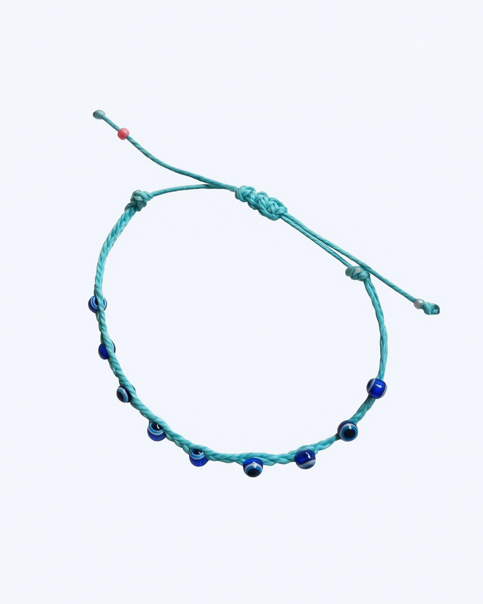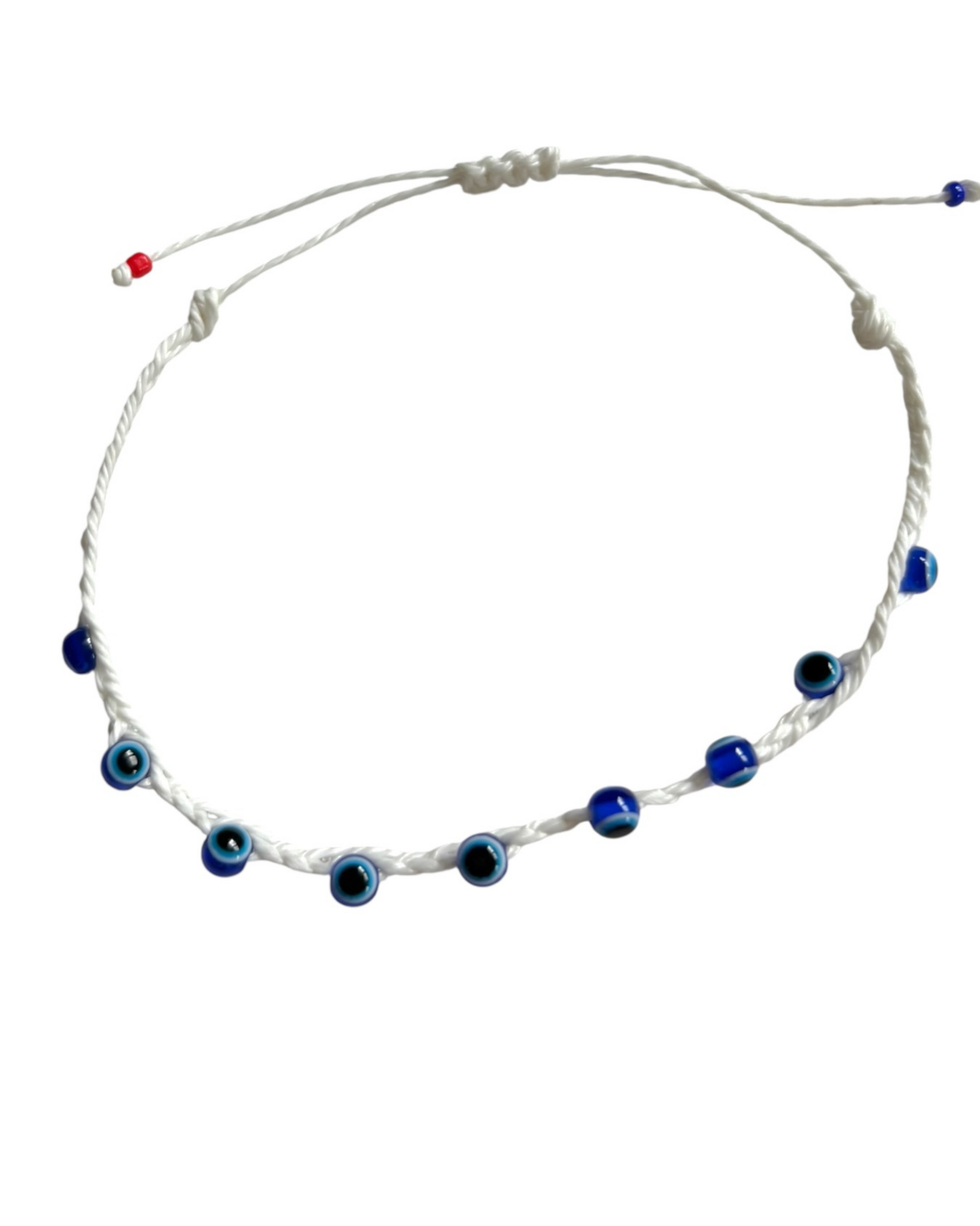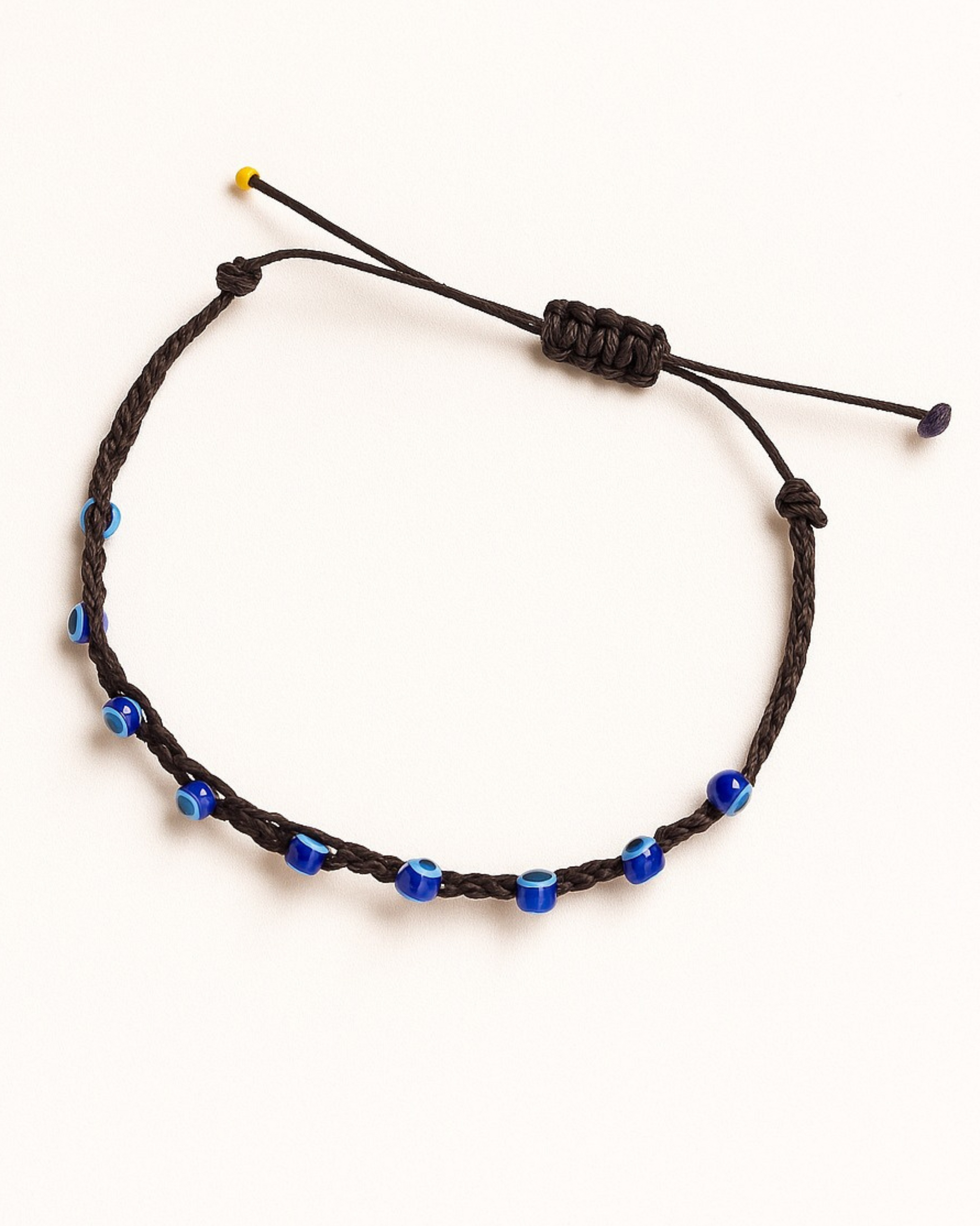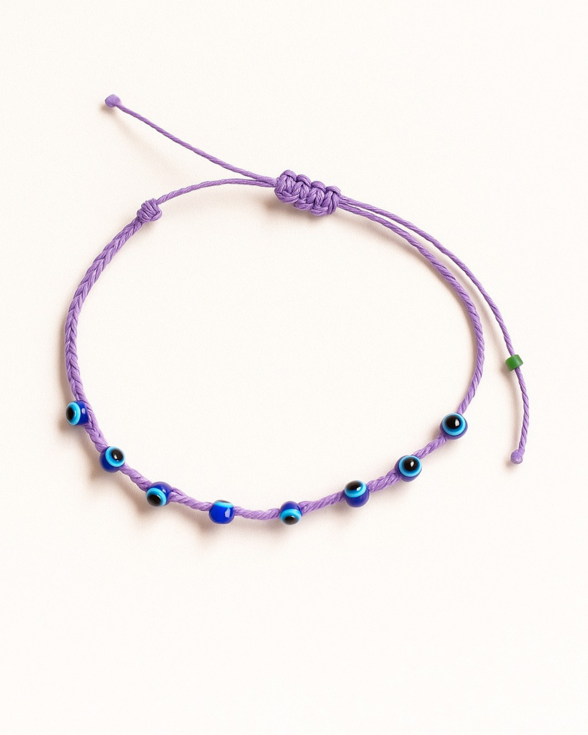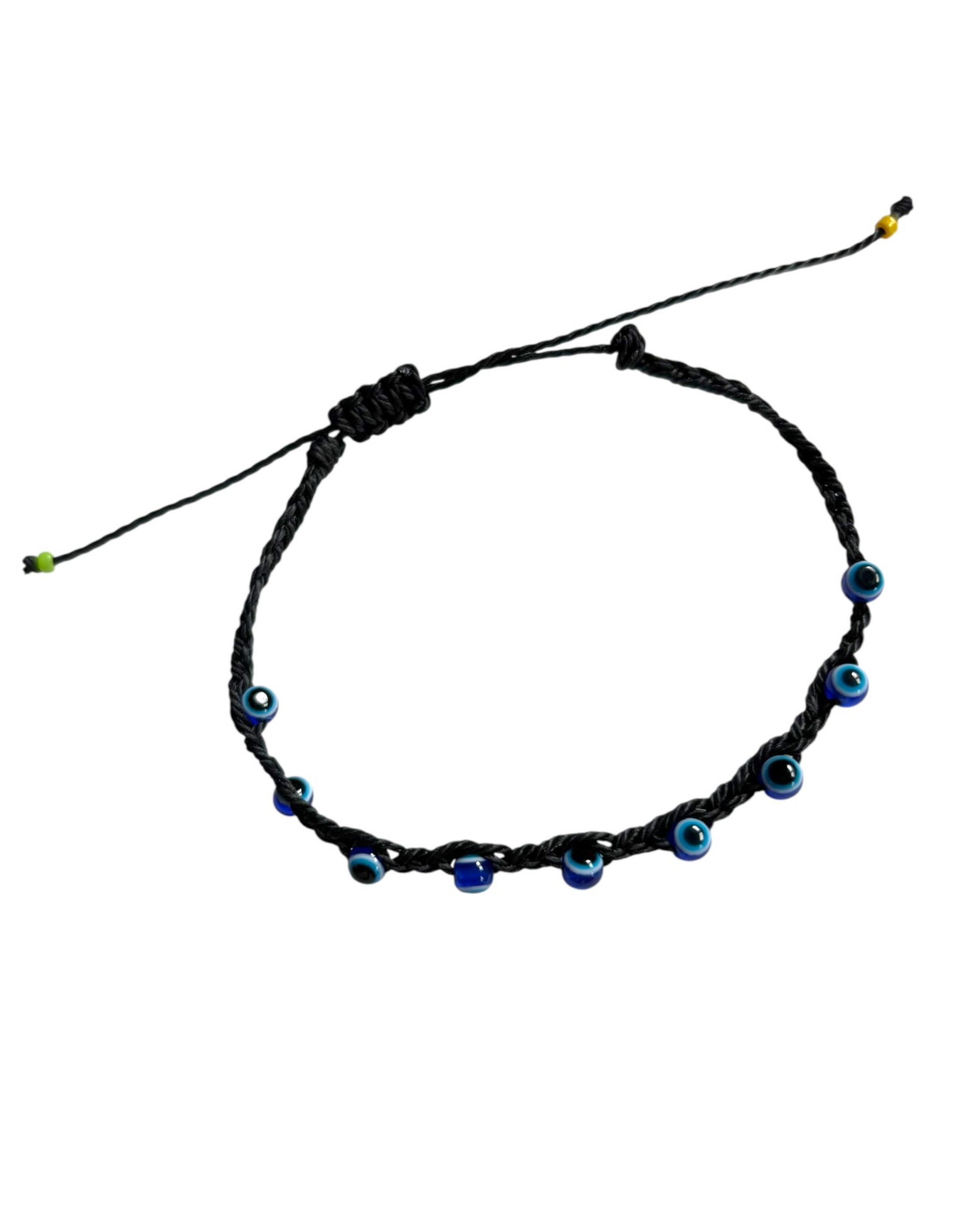 Pulseras de hilo encerado resistente en varios colores con ojitos turcos en azul.